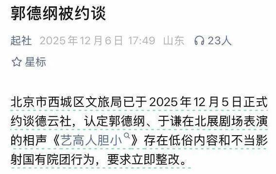 要知道,年郭德纲走红的那天起,他的剧场相声就没少被外界议论,低俗是老话题,但“约谈”二字把郭德纲和德云社再次推上了风口浪尖